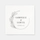 Cette serviette mariage présente un design épuré et minimal agrémenté d'un graphique d'une couronne avec des feuilles sur un arrière - plan blanc. Personnalisez avec les noms de la mariée et du marié et leur date de mariage.