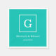 Serviette En Papier Monogramme initial encadré par blanc turquoise