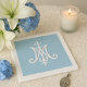Serviette En Papier Monogramme religieux marial catholique bleu blanc