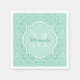 Serviette En Papier Monogramme vert de menthe élégant avec nom