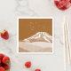 Illustration de la cabane Syme sur le pic Fathoms, avec le mont Taranaki en arrière - plan. Ce design est dessiné dans un monochrome marron et a les étoiles Matariki au-dessus dans le ciel. Un design pour tous ceux qui aiment le randonnée et le tramping en Nouvelle-Zélande.