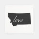 Doté de la silhouette silhouette silhouette de l'état du Montana remplie d'un arrière - plan noir solide et le mot Amour en blanc bas coque écriture ces serviettes de fête papier sont parfaites pour quiconque aime le Montana. Si vous aimez votre état, vous allez adorer ces serviettes Montana Love avec la forme de plan de l'état rempli en noir et le mot amour à l'intérieur.
