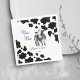 Moo moo noir motif mignon vache fête d'anniversaire vache serviettes personnalisées en papier serviettes, invitation ludique en photo fantaisie pour une fête d'anniversaire à thème de la ferme, écriture bleue pour un anniversaire de garçon.