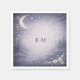 Elegant wedding napkins featuring subtle silver botanical engraving accents and celestial details on a rich navy background. Ideal for adding a refined moon and forest theme touch to reception tables, cocktail bars, and dessert stations.