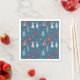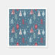 Motif de Noël d'hiver. Rouge stylisé, arbres de Noël verts, boules de Noël sur un arrière - plan bleu.