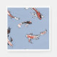 Caractérisé par un design graphique de carpe koi contre un arrière - plan bleu, basé sur l'art traditionnel japonais. Les poissons sont des animaux ornementaux souvent gardés dans des étangs dans les jardins orientaux, et ils peuvent symboliser l'amour romantique, l'affection et l'amitié, parce que le mot "koi" en japonais est prononcé de la même façon qu'un autre mot qui signifie "amour".