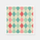Profitez d'un look rétro amusant qui rappelle le cirque avec ce design arlequin aux tons turquoises, menthe, rouge, rose et beige. Montrée ici avec simplement le motif arlequin, cette serviette est également disponible dans une version personnalisée pour les fêtes d'anniversaire et d'autres événements.