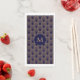 Serviettes d'hôtes en papier motif monogrammé or et bleu art déco. Un motif d'inspiration art déco bleu doré. Style Gatsby années 1920.