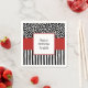 Pois lunettes et rayures tordues en noir et blanc accentuées par le rouge. Personnalisez ce design en ajoutant votre propre texte. Egalement disponible dans les invitations.