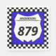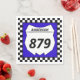 Offrez-vous un style à votre prochaine course de motocross avec des serviettes en papier personnalisées. Ces serviettes ont une plaque blanche qui est prête à être personnalisée avec votre nom et numéro de vélo. La plaque numérique est fixée sur un arrière - plan bleu vif avec une bordure de drapeau à damiers noir et blanc.