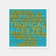 Mots qui signifient été : Brise tropicale, Bleu Cool et Lever de soleil Tequila combinés avec des images de Feuilles Monstera, Palmiers, Hibiscus et créer ce design graphique.