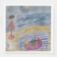 Un après-midi d'été heureux sur la plage pourrait être gâché par des mouettes très affamées. Un délicieux pique-nique de fruits tranchés est disposé sur une serviette rayée bleue et les mouettes de plage attendent leur chance. Les pique-niqueurs seront-ils privés de leur déjeuner ? C'est une scène de bord de mer colorée et attrayante avec une plage de sable doré, des vagues bleues et des mouettes effrontées.