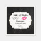 Des serviettes en papier personnalisées pour un anniversaire mariage avec un design branché - des lèvres de bisou rose glamour et une illustration de moustache d'apparence rétro masculine. Les mots à la recherche rétro dit M. et Mme et vous pouvez personnaliser avec votre nom et années ensemble. Placez-vous sur un arrière - plan en damier noir avec un cadre décoratif soigné avec une bordure en dégradé doré superposée.