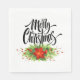 La serviette en papier de vacances est présentée en format standard pour le déjeuner, en blanc avec un design d'impression festif poinsettia. Parfait pour tous vos fêtes de vacances. Customisez cet objet ou achetez tel quel. Image stock freepik.com