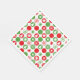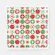 La serviette en papier de fête est montrée dans un Noël festif couleurs flocons de neige et d'arbres imprimer. Taille du déjeuner indiquée. Customisez cet objet ou achetez tel quel.