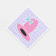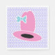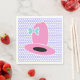 Casquette de cowgirl rose avec arc bleu sur un terrain violet rempli de pois blancs.