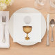 Ce design est un chalice. Le calice est doré et a un morceau de pain au-dessus. Ce design chalet est parfait pour cette serviette en papier