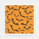 Une serviette de table en papier de fête en format déjeuner blanc avec une impression de chauve-souris d'Halloween. Couleur orange Customisez cet article ou achetez tel quel.