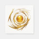 Un ensemble de serviettes en papier orné d'une pièce d'art en forme de soleil doré avec des tourbillons abstraits autour.