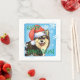 Célébrez la saison des Fêtes avec un joli Lapphund finlandais portant un chapeau de Père Noël au milieu d'un déluge de flocons de neige. Joyeux Howlidays !