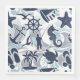 Cette serviette en papier présente un motif d'été amusant d'éléments nautiques, y compris l'ancre, la mouette, l'étoile de mer et bien d'autres, le tout en bleu marine avec des tourbillons et des accents bleu aqua ondulé. Recherchez ID839 et ID840 pour voir d'autres produits avec cette conception et des options de couleur supplémentaires.