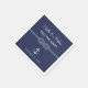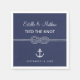 Thème nautique moderne d'ancre et de corde nouée se superposant sur du bleu marine avec écriture et typographie moderne, serviettes en papier pour mariages.