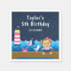 Cette serviette mignonne et amusante est munie d'un singe marin sur un pont en bois avec un mouette et un crabe. Dans l'arrière - plan il y a un phare rose et blanc, un oiseau mignon sur un voilier, des vagues de l'océan et un ciel étoilé bleu marine. Le texte combine des polices audacieuses et serif pour un look élégant et moderne. C'est parfait pour une fête d'anniversaire à thème nautique.