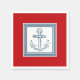 Design à thème nautique avec décoration d'ancre en carrés rayés sur arrière - plan rouge