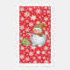 Un Napkin Rouge Et Blanc Avec Des Pneus De Neige Blanches Et Un Bon Snowman Avec Du Mistletoe À La Main