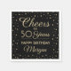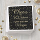 Ajoutez une touche élégante et personnalisée aux décorations de fête d'anniversaire avec ces serviettes en papier noir et or personnalisées. Design dispose de la calligraphie script moderne personnalisable "Cheers to 50 Years" et de faux points en or confetti sur un arrière - plan noir. Veuillez noter que le texte est imprimé en couleur et non en papier métallique. Ce modèle est conçu pour une célébration d'or du 50e anniversaire, mais il est simple de personnaliser une année différente. Joyeux anniversaire !