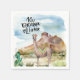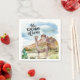 Cute Llama dans le désert avec des cactus, une montagne et de l'herbe autour. Un ciel bleu aquarelle est au-dessus de la Llama et il y a la description drôle "No Drama Llama"