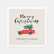 Accompagnez votre fête de Noël avec cette charmante serviette en papier à thème de la ferme. Le design est accentué par un graphisme vintage aquarelle d'une voiture rouge transportant un sapin de Noël fraîchement coupé sur le dessus. La calligraphie manuscrite dit "Joyeux Noël" avec le texte personnalisé pour votre nom de famille.