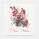 Jolies serviettes en papier de Noël en blanc, avec de belles oeuvres d'un cardinal rouge et des fleurs. Personnalisez le texte, avec votre propre salutation de vacances.