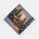 Ces serviettes de Noël ou de vacances présentent un cabine d'ambiance dans les bois au coucher du soleil.