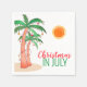 Fêtons Noël en juillet avec un barbecue ou une fête ! Famille Invitation et amis à votre fête de Noël et décorez-la avec ces serviettes en papier de style île ornées de palmiers dessinés à la main et décorés de lumières. Dessin original © Michele Davies.
