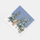 Beaux serviettes en papier avec un thème Forêt Enchantée. Joli petit faon, écureuils et oiseaux dans une forêt de pins enneigés. Le ciel bleu clair au-dessus commence à montrer de beaux flocons de neige tombant au sol. Un vieux panneau en bois indique Joyeux Noël.