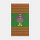 Ce paquet impressionnant de serviettes en papier présente un drôle de dessin d'une dinde de Noël aux grands yeux noirs, un petit bec jaune et des plumes de queue qui collent. Les pieds sont orientés dans des directions opposées, ce qui rend la dinde maladroite. La dinde porte un chapeau de Père Noël rouge et blanc et est prête pour Noël.