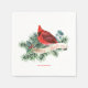 Serviettes de Noël cardinales rouges festives portant le nom. Jolie aquarelle design avec cardinal, pin et baies. Facile à modifier le texte.
