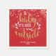 Serviettes en papier de Noël personnalisées avec la phrase "Bébé il fait froid dehors", dans un texte script élégant or et blanc sur fond rouge avec des flocons de neige tombant avec le nom de la famille et l'année. Parfait pour les réunions et les fêtes de Noël ! Conçu par Thisisnotme©
