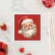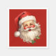Serviettes en papier avec une joyeuse illustration d'un Père Noël de style vintage aux joues rouges roses. portant son chapeau de Père Noël rouge classique et son grand ours blanc. Un spring de saint ajoute à l'esprit festif de fête de ce design.