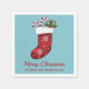 L'illustration originale de Destei d'un bas de Noël rouge festif qui en sort deux sucres de canne. La couleur arrière - plan est bleue. Il y a aussi deux zones de texte personnalisables.