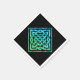 Un ensemble de serviettes en papier avec un unique noeud bleu-vert celtique en diamant contre un arrière - plan noir.