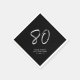 Cette simple serviette personnalisée ajoutera des détails élégants à votre fête du 80e anniversaire. Ce design comporte un script de brosse chic "80" avec du texte personnalisé sur un arrière - plan noir. Des invitations et des fournitures de fête correspondants sont disponibles dans ma boutique BaraBomDesign.
