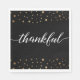 Ajoutez cette touche de sophistication moderne à vos serviettes. Le mot "Thankful" dans une police de style manuscrit simple avec de longues queues en noir avec des confettis d'impression en faux or. Un look tendance et chic. Essayez-le pour des fêtes spéciales comme Thanksgiving et Noël, événements d'entreprise.