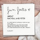 Commencez la soirée avec ces serviettes de cocktail "Fun Facts" en noir et blanc minimaliste. Elles sont parfaites pour les mariages, les fiançailles ou pour toute occasion spéciale. Personnalisez avec les noms et la date du couple heureux pour une touche de charme personnel. Vous pouvez également modifier la couleur du texte et de l'arrière - plan. Commandez dès maintenant et faites de votre journée spéciale une journée encore plus mémorable ! Noir et blanc Minimaliste 'Fun Facts' Drôle Cocktail Personnalisé serviettes pour la partie d'engagement Mariage | Serviettes de Mariage blanc avec nom et date