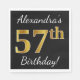 Serviette En Papier Noir, Faux Gold 57e anniversaire + Nom personnalis