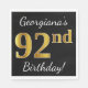 Serviette En Papier Noir, Faux Gold 92e anniversaire + Nom personnalis