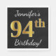 Serviette En Papier Noir, Faux Gold 94e anniversaire + Nom personnalis