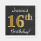 Serviette En Papier Noir, Faux Or 16e anniversaire + Nom personnalisé