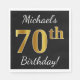 Serviette En Papier Noir, Faux Or 70e anniversaire + Nom personnalisé